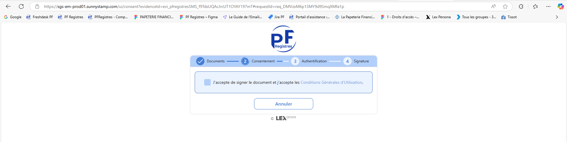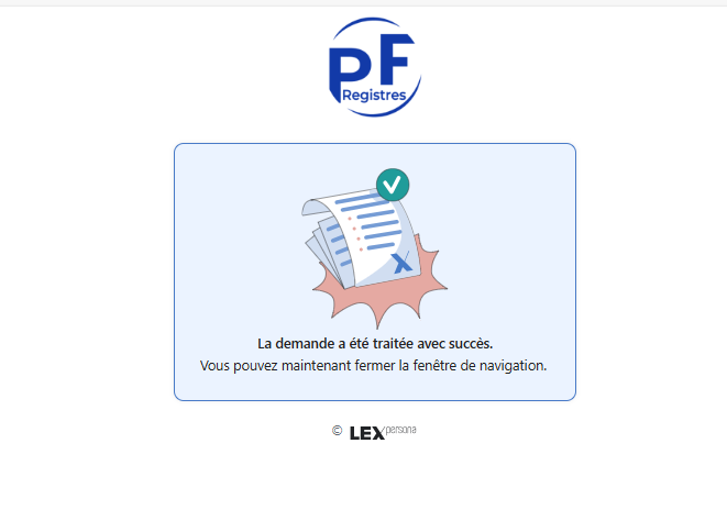 En cliquant sur le lien, le signataire est dirigé sur la page suivante :