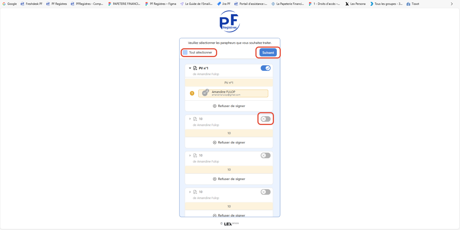 - Sélectionner tous les documents, pour apposer sa signature une seule fois (en cochant "Tout sélectionner")