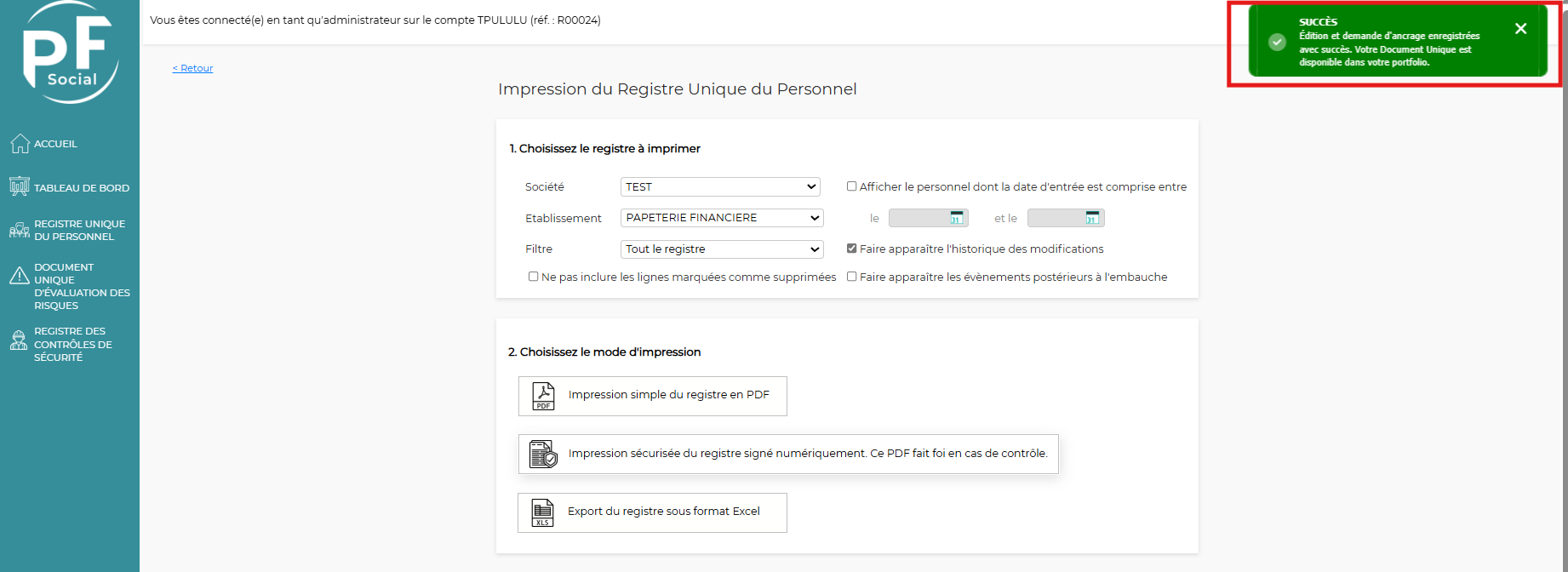 Pour les registres unique du personnel / contrôle de sécurité :