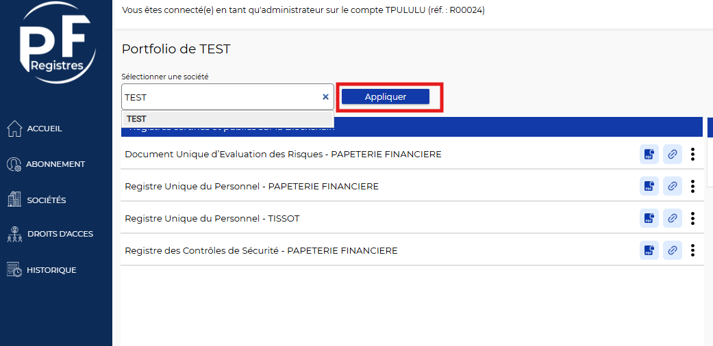 Retourner sur l'accueil et se connecter dans le portfolio - où se trouve vos registres opposables